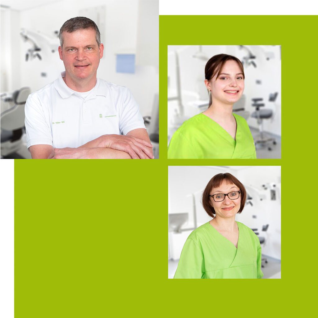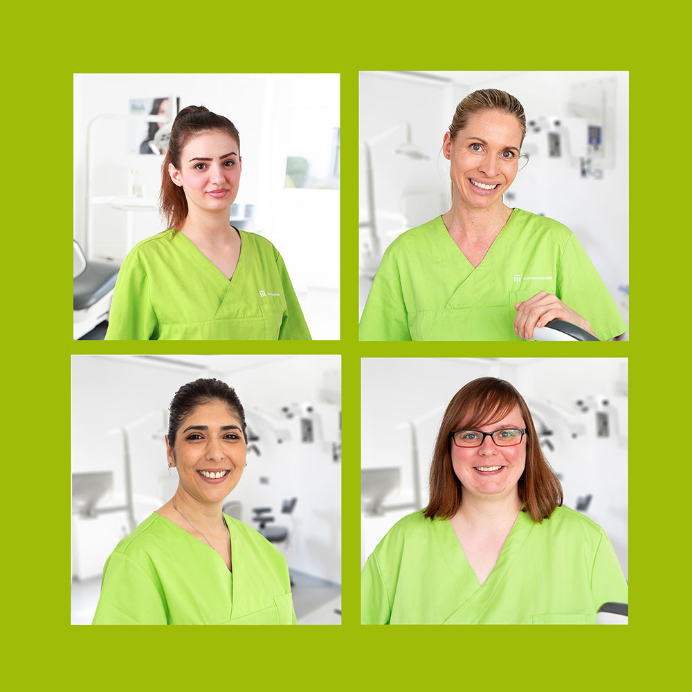 Somit können wir einen zügigen Behandlungsablauf erreichen. Alle Mitarbeiterinnen nehmen regelmäßig an internen und externen Fortbildungen teil, wodurch sie permanent auf dem neuesten Wissensstand in der Stuhlassistenz und in den Tätigkeitsschwerpunkten unserer Praxis sind.